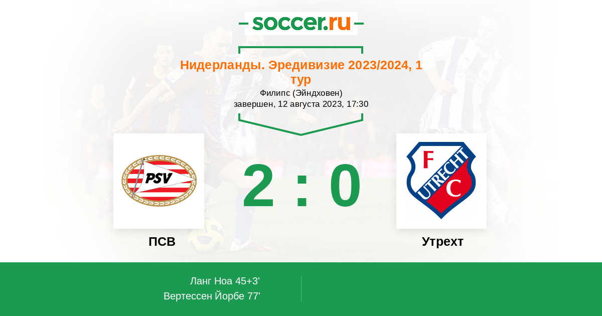 Протокол матча ПСВ против Утрехт