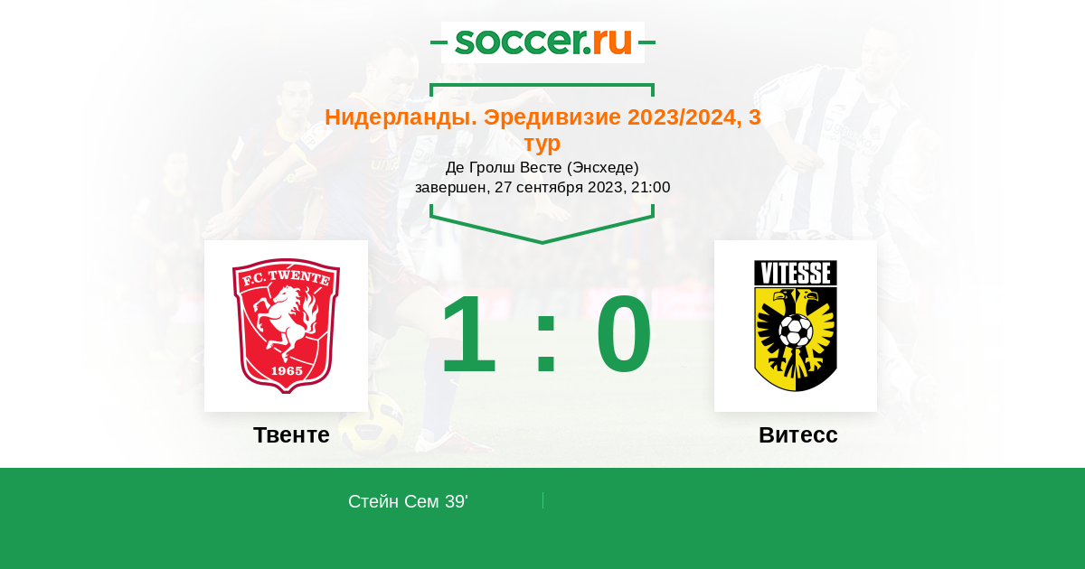 Протокол матча Твенте против Витесс