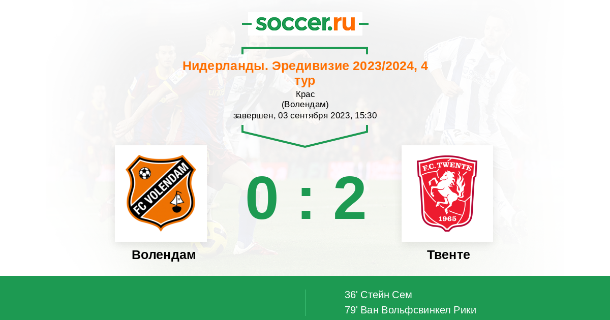 36' (0:1) Стейн Сем (14) (Влап Михел (18))