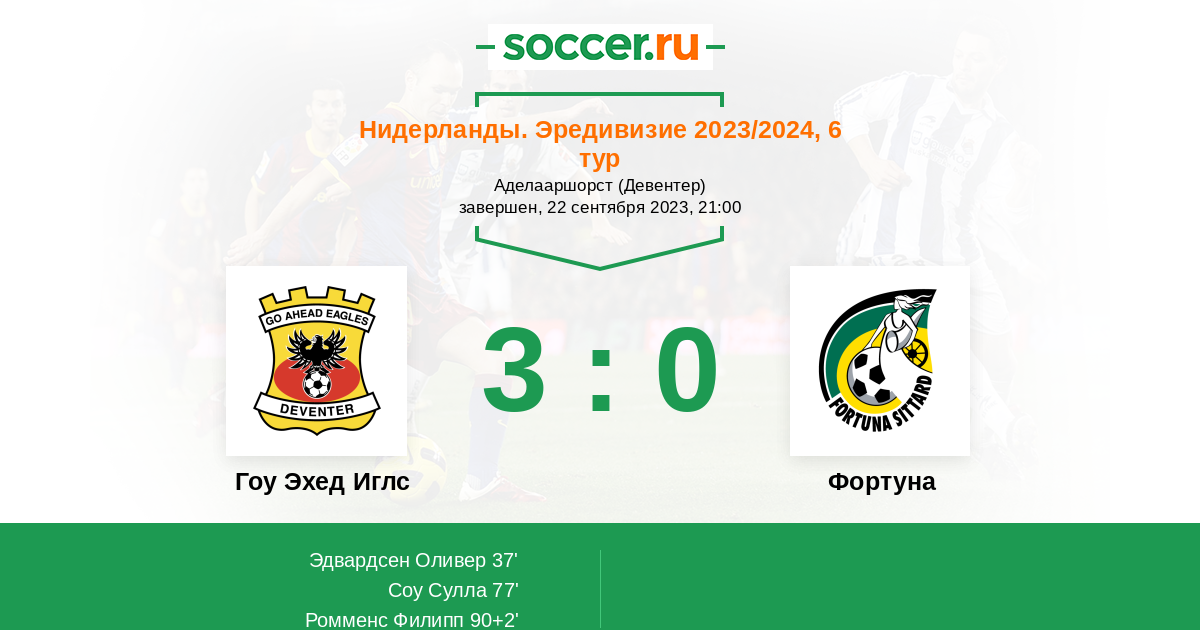 Протокол матча Гоу Эхед Иглс против Фортуна