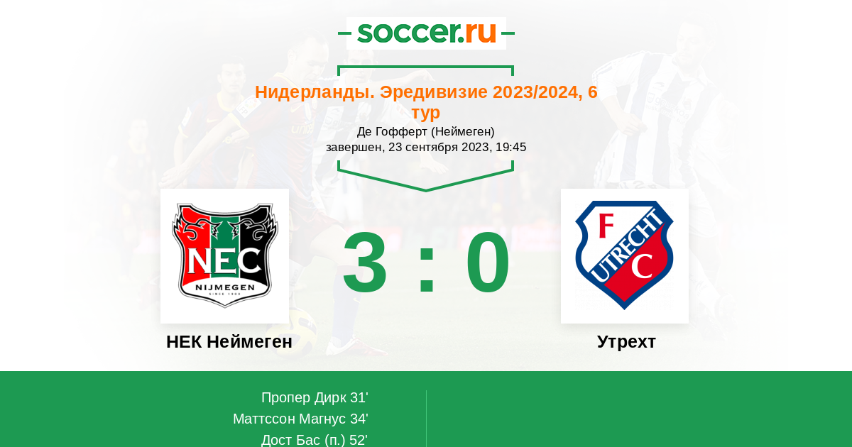 Протокол матча НЕК Неймеген против Утрехт