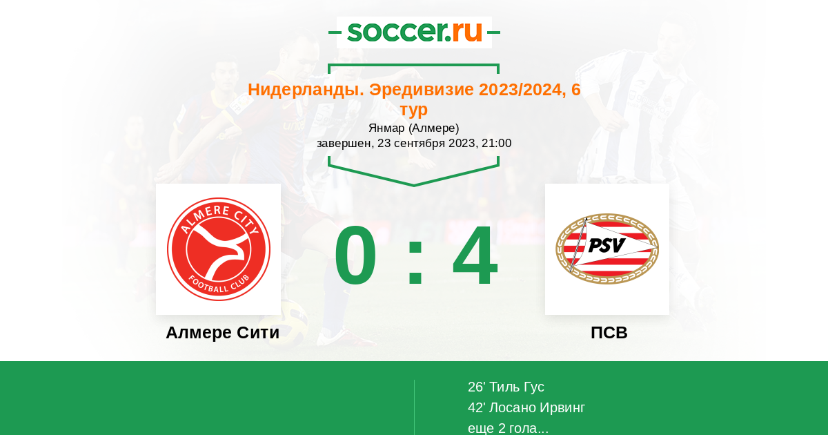 Протокол матча Алмере Сити против ПСВ