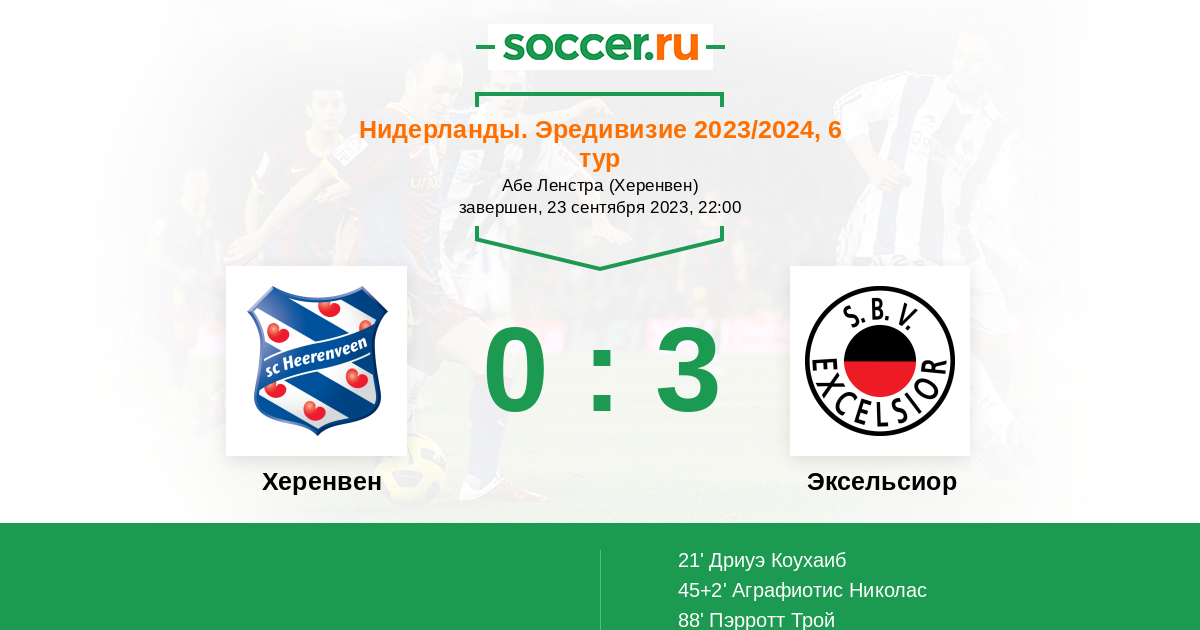 Протокол матча Херенвен против Эксельсиор