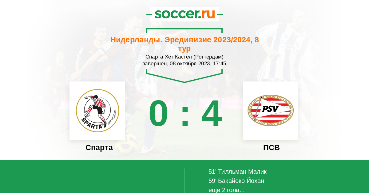 Протокол матча Спарта против ПСВ
