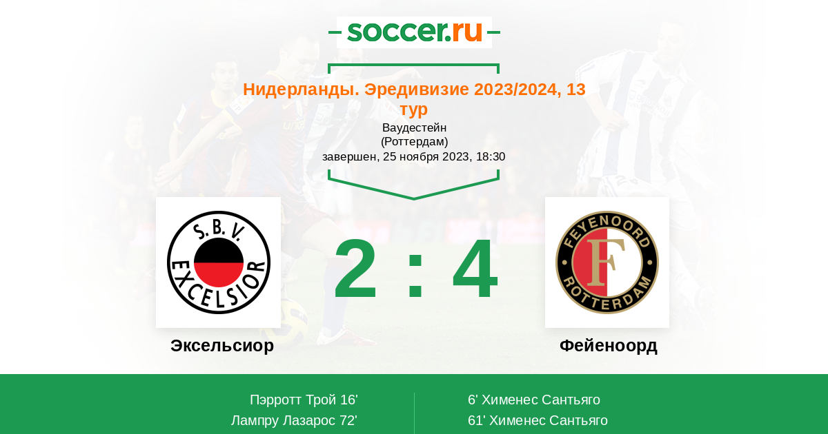 Протокол матча Эксельсиор против Фейеноорд