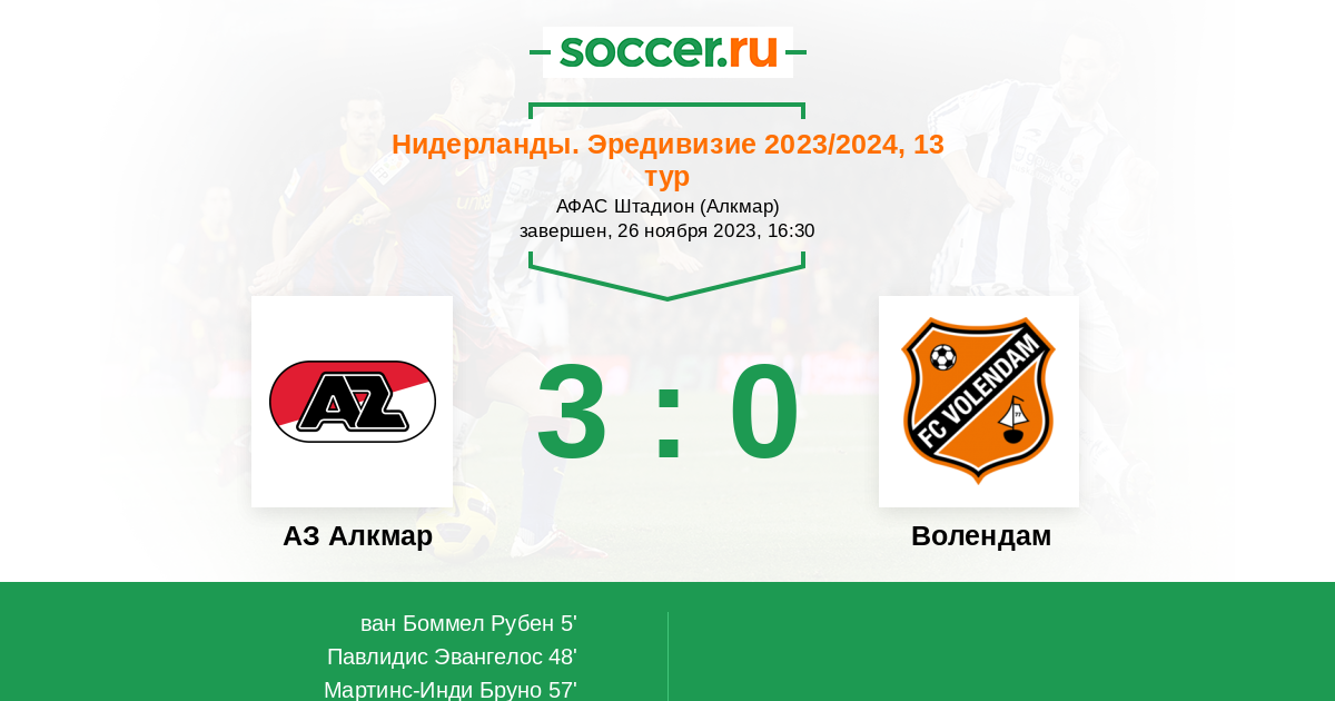 Протокол матча АЗ Алкмар против Волендам