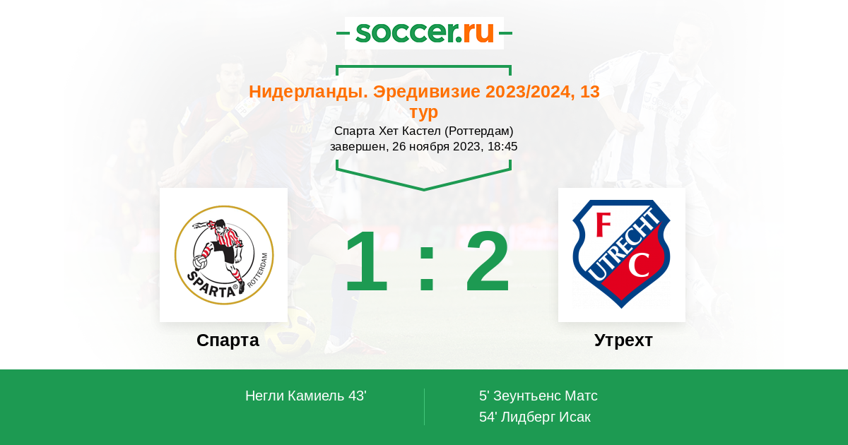 Протокол матча Спарта против Утрехт