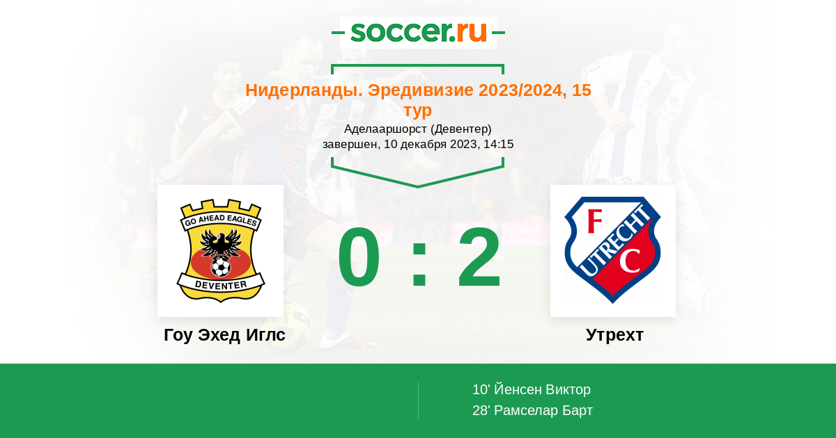Протокол матча Гоу Эхед Иглс против Утрехт