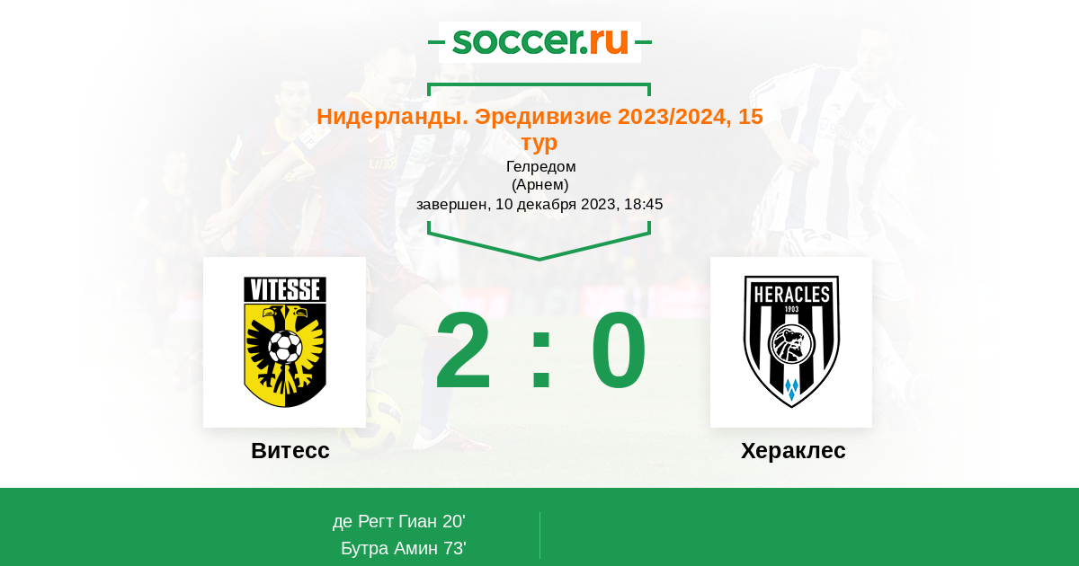 Протокол матча Витесс против Хераклес