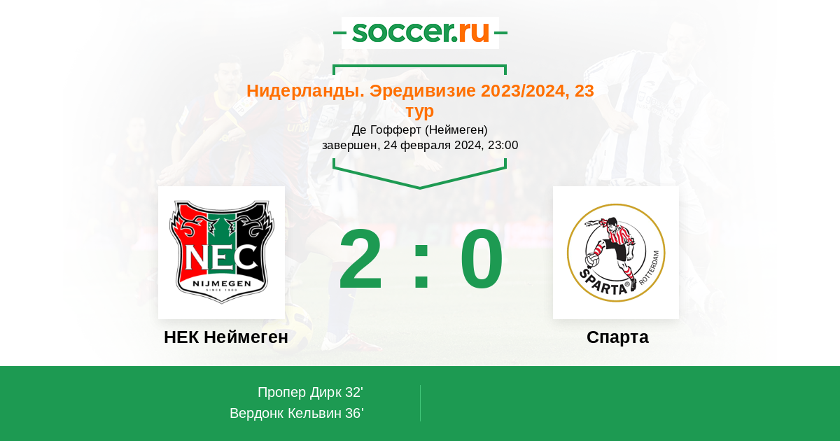 Протокол матча НЕК Неймеген против Спарта