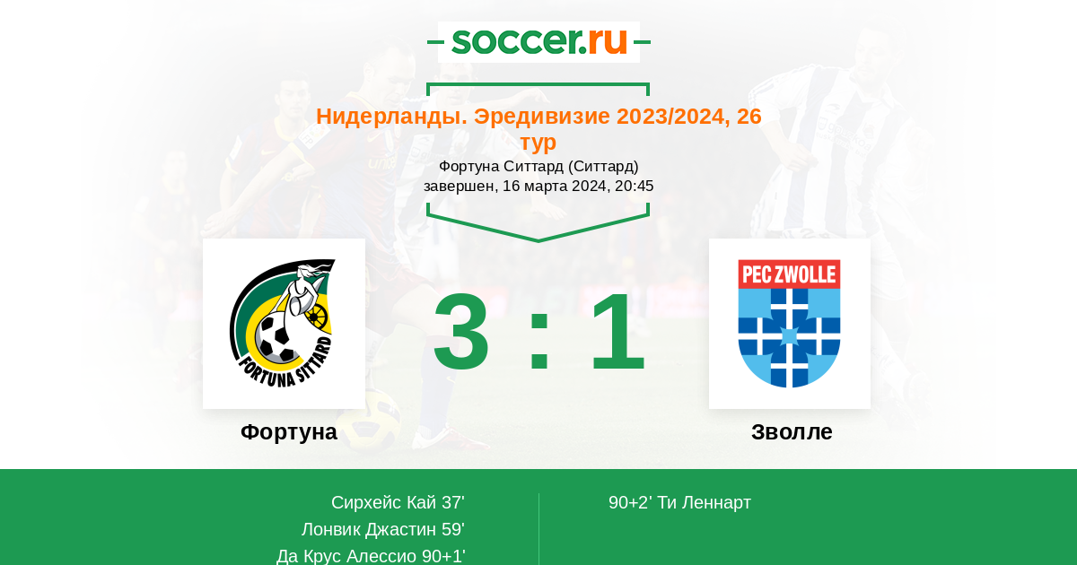 Протокол матча Фортуна против Зволле