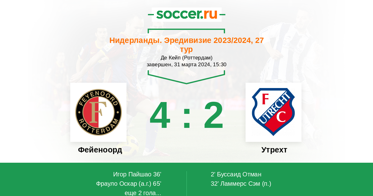 Протокол матча Фейеноорд против Утрехт