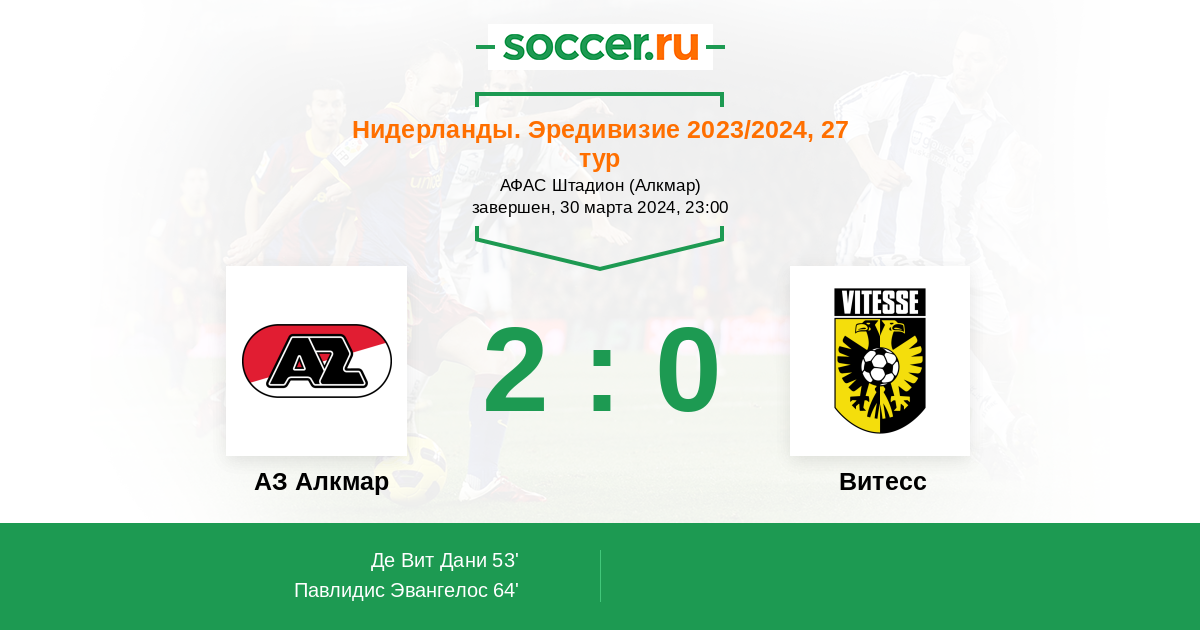 В предстоящем матче 27 - го тура нидерландского Эредивизие между командами АЗ Алкмар и Витесс , более чем явным фаворитом на победу является команда хозяев АЗ Алкмар , так как они играют лучше.