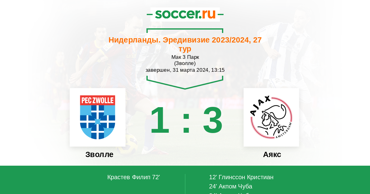 Зволле - Аякс ! Форма хозяев поля находится вообще в " плачевном "состоянии , гости же наоборот потихоньку " приходят в себя " и стараются как можно выше подняться по турнирной таблице .
