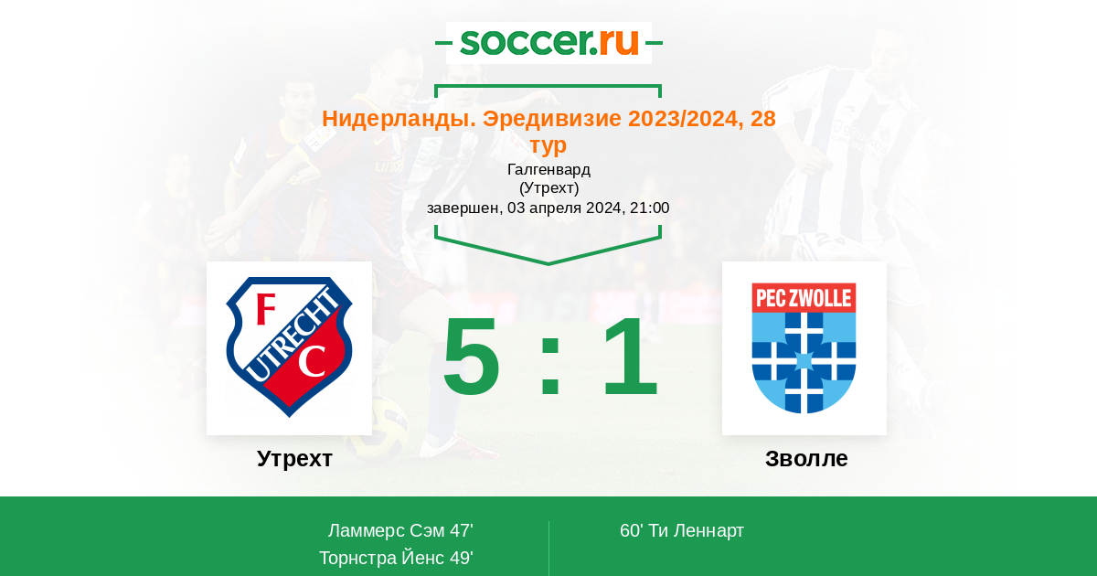 Протокол матча Утрехт против Зволле