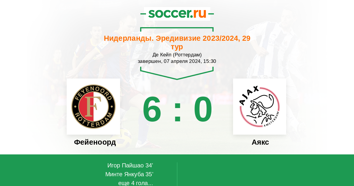 Протокол матча Фейеноорд против Аякс