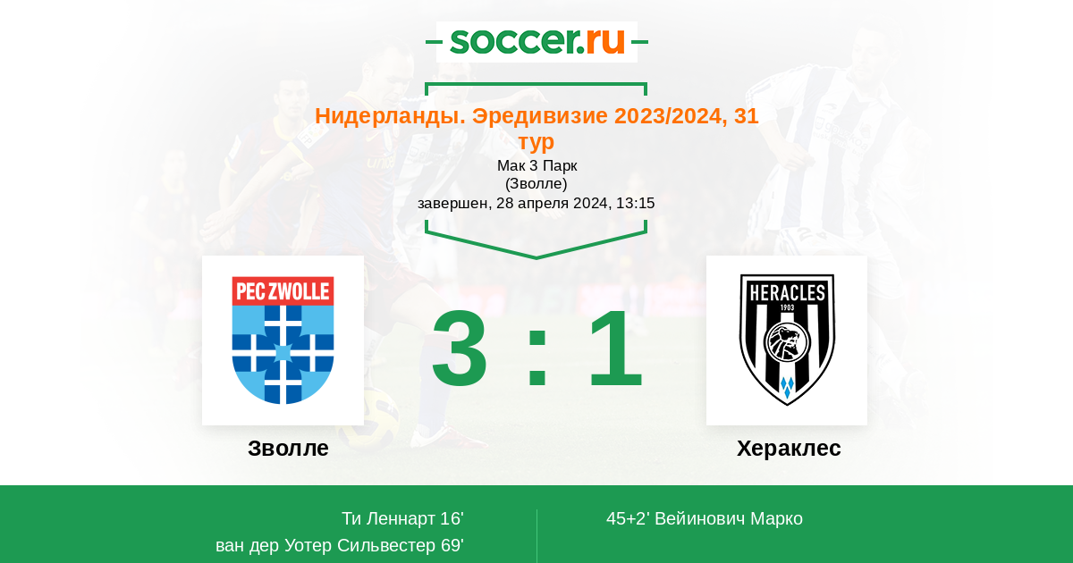 Протокол матча Зволле против Хераклес