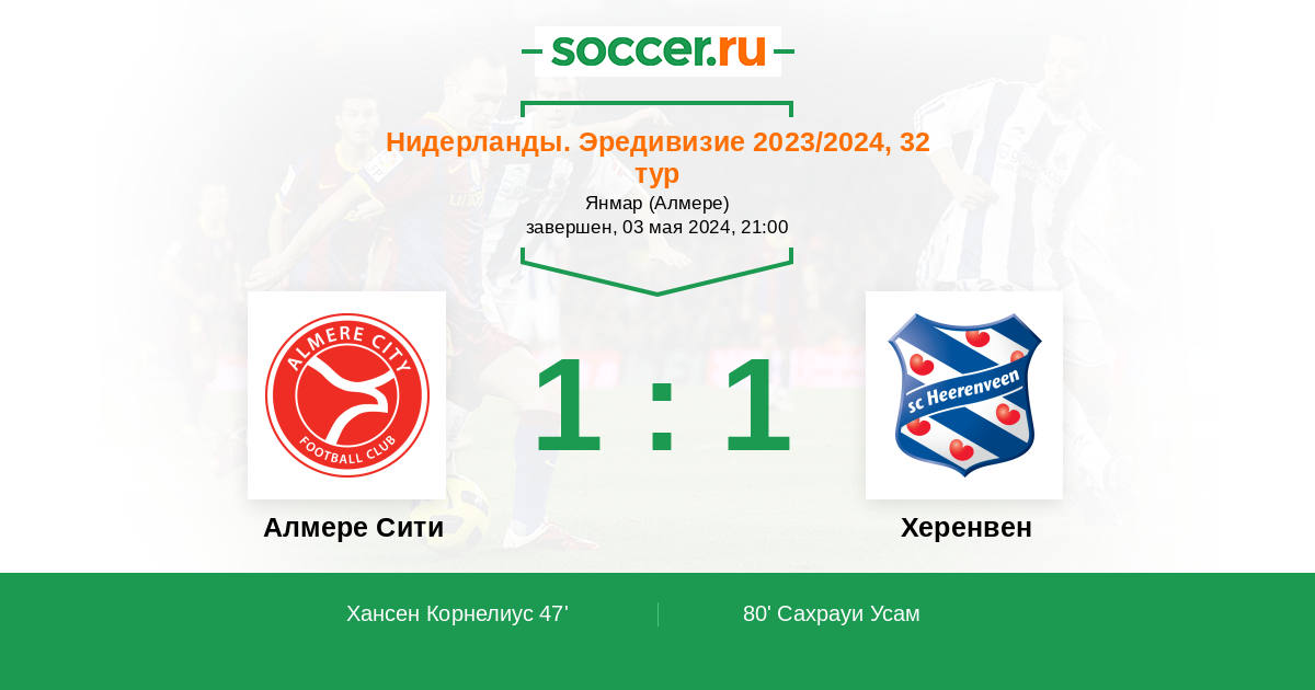 47' (1:0) Хансен Корнелиус (17) (Копмейнерс Пер (15))