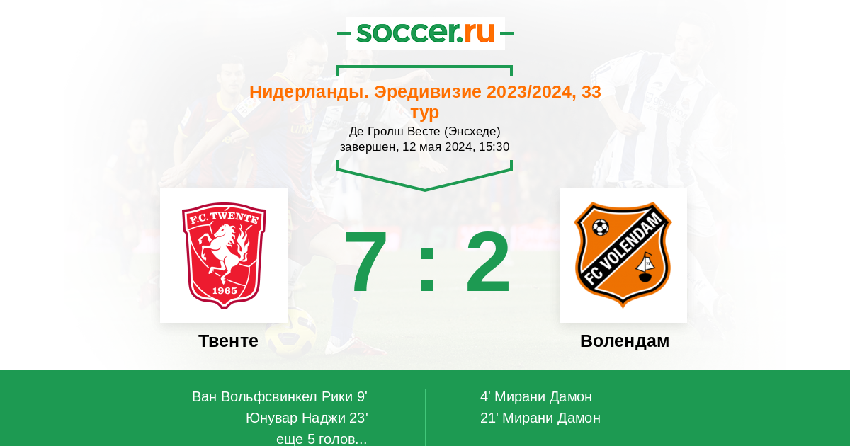 Протокол матча Твенте против Волендам