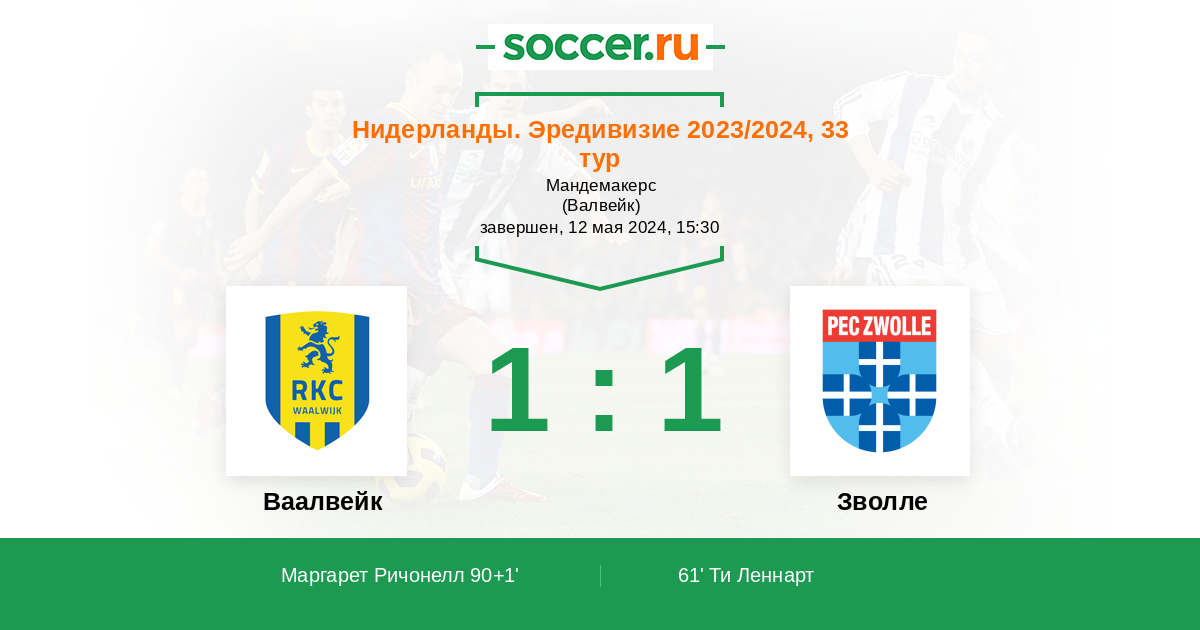 Протокол матча Ваалвейк против Зволле