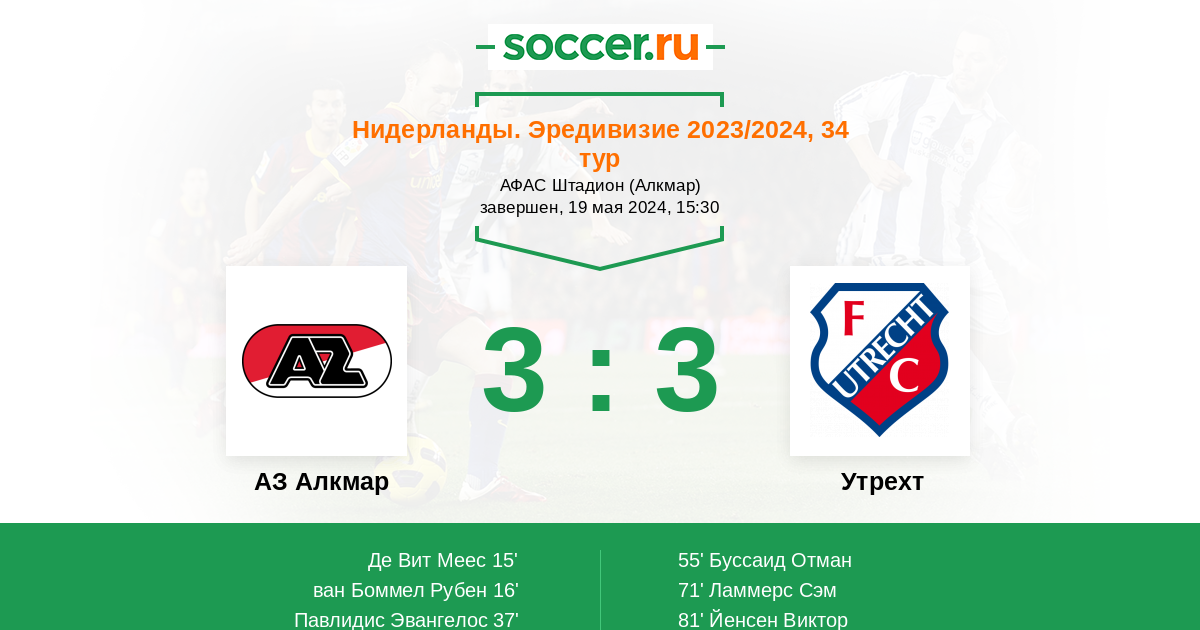 Протокол матча АЗ Алкмар против Утрехт