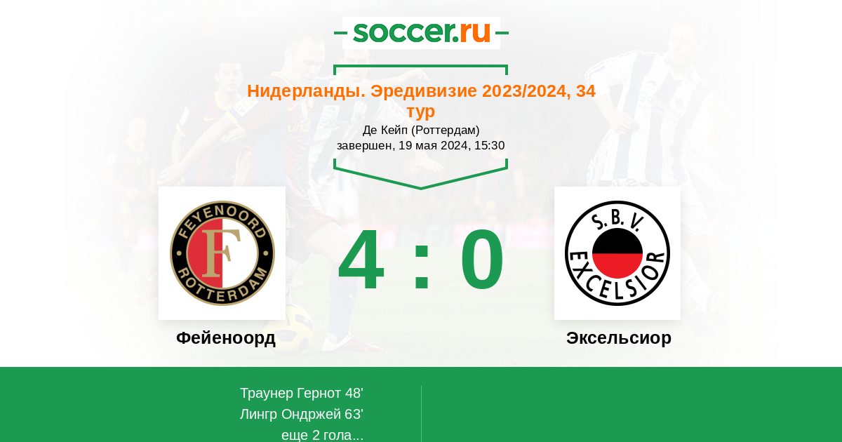 Протокол матча Фейеноорд против Эксельсиор