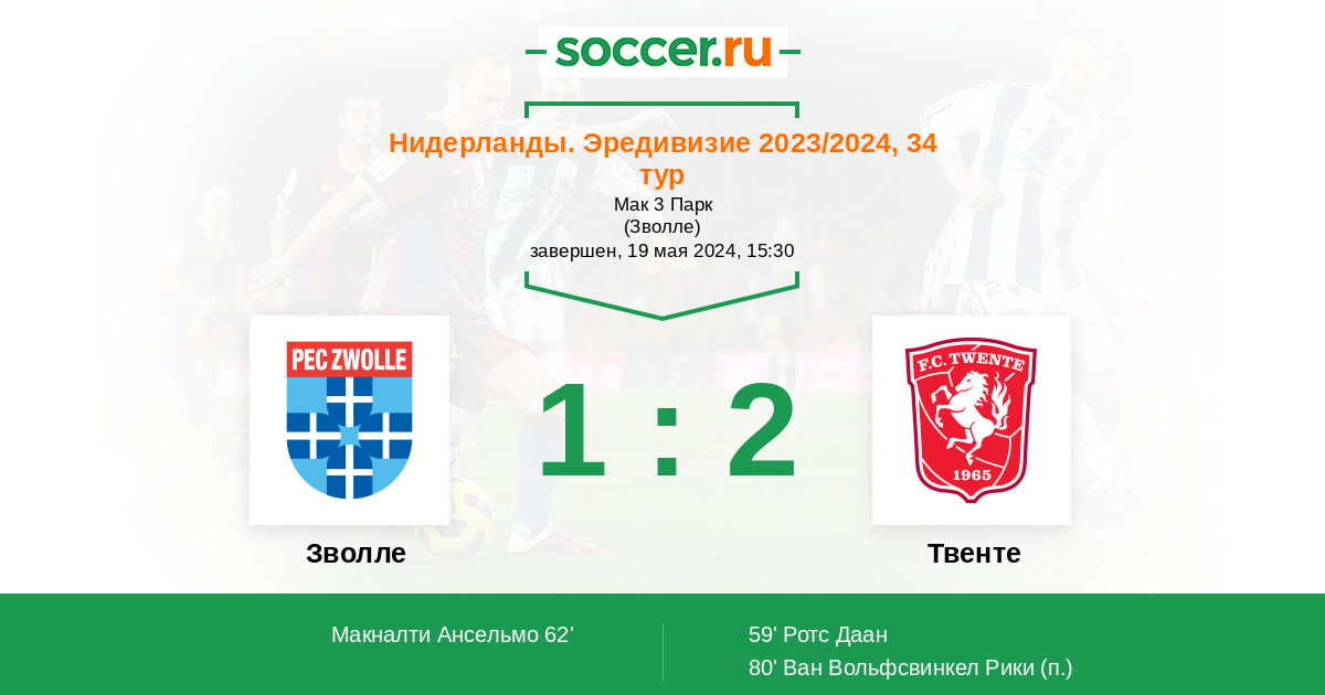 В предстоящем заключительном матче 34 - го тура нидерландского Эредивизие между командами Зволле и Твенте , более чем явным фаворитом на победу является команда гостей Твенте, так как они играют лучше.