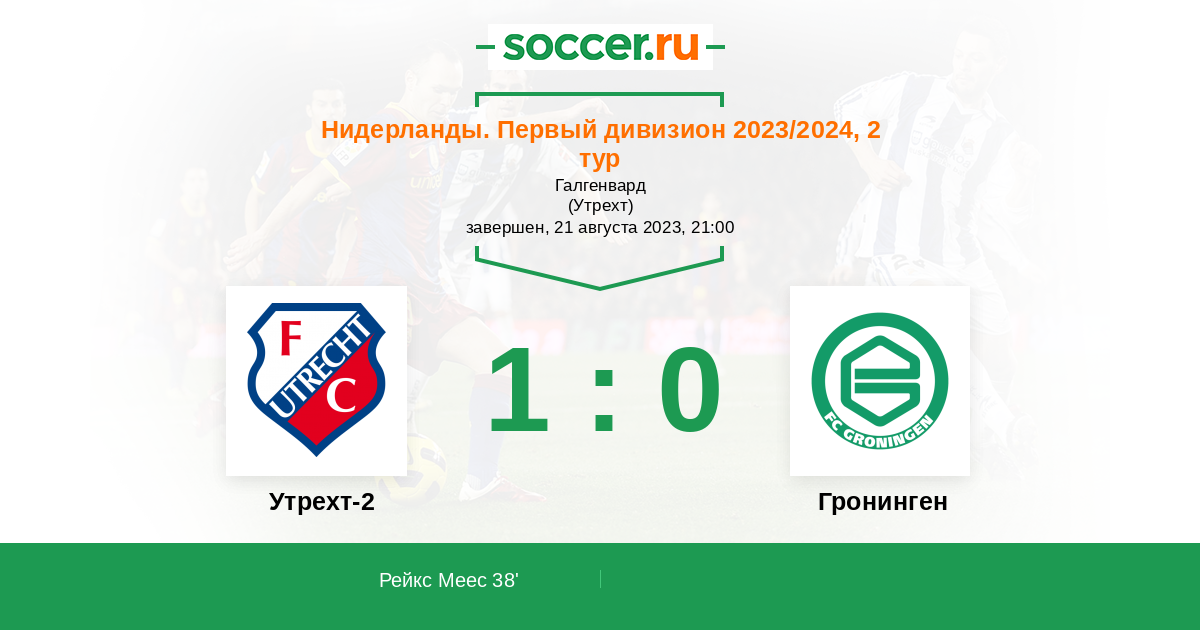 Протокол матча Утрехт-2 против Гронинген