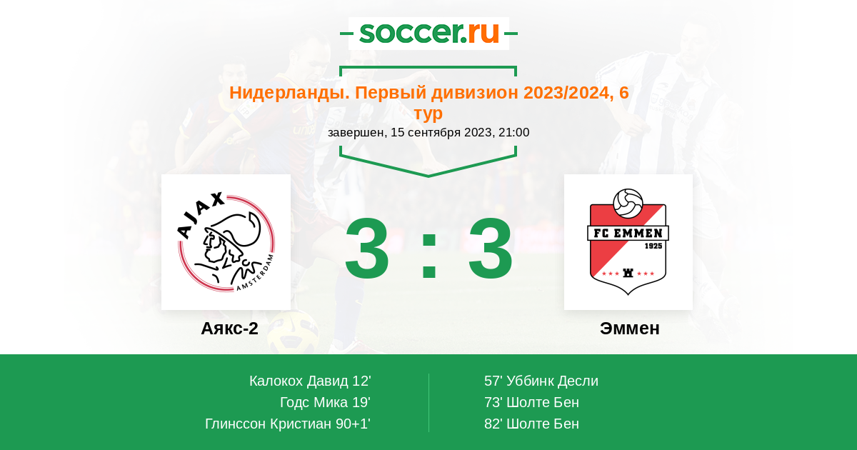 Протокол матча Аякс-2 против Эммен
