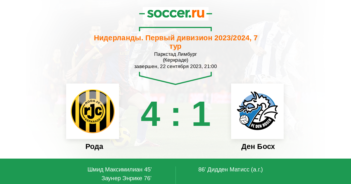 Протокол матча Рода против Ден Босх
