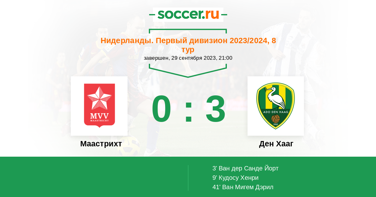 Протокол матча Маастрихт против Ден Хааг