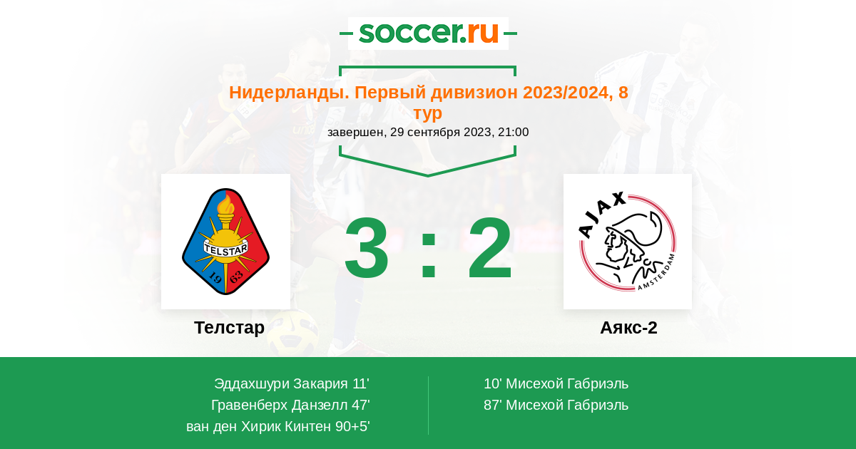 Протокол матча Телстар против Аякс-2