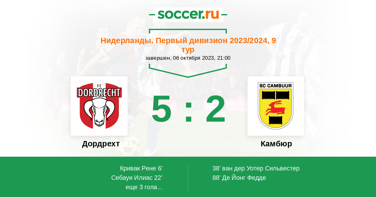 Протокол матча Дордрехт против Камбюр