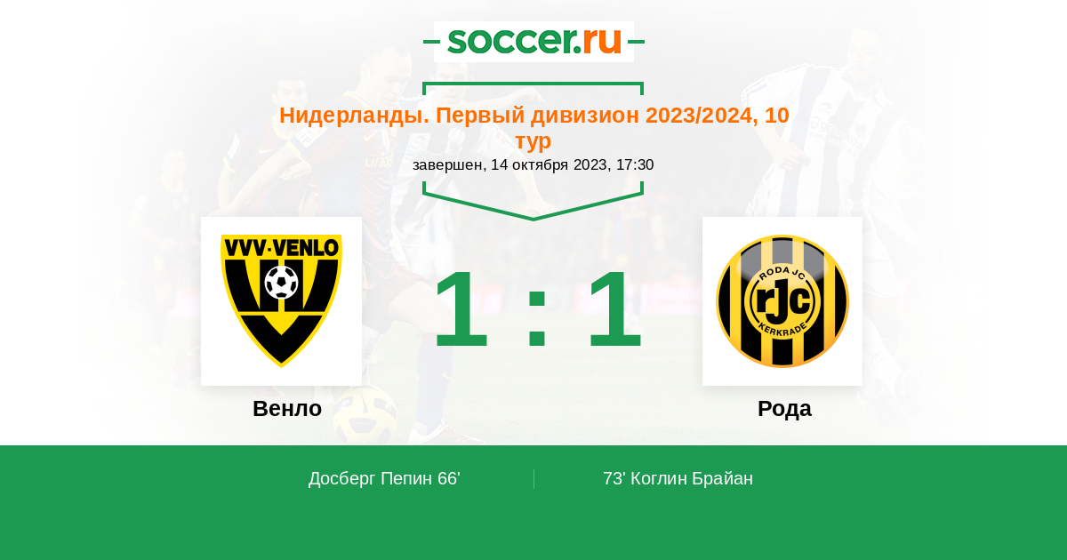 Протокол матча Венло против Рода