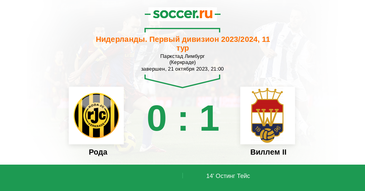 Протокол матча Рода против Виллем II