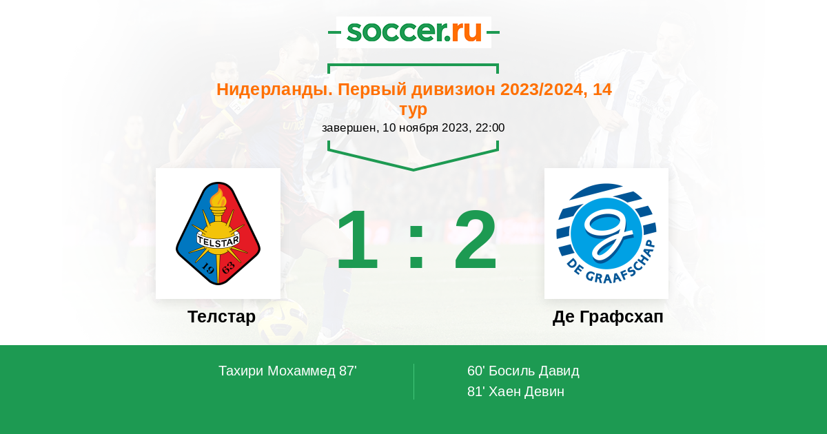 Протокол матча Телстар против Де Графсхап