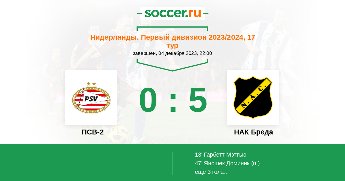 Протокол матча ПСВ-2 против НАК Бреда