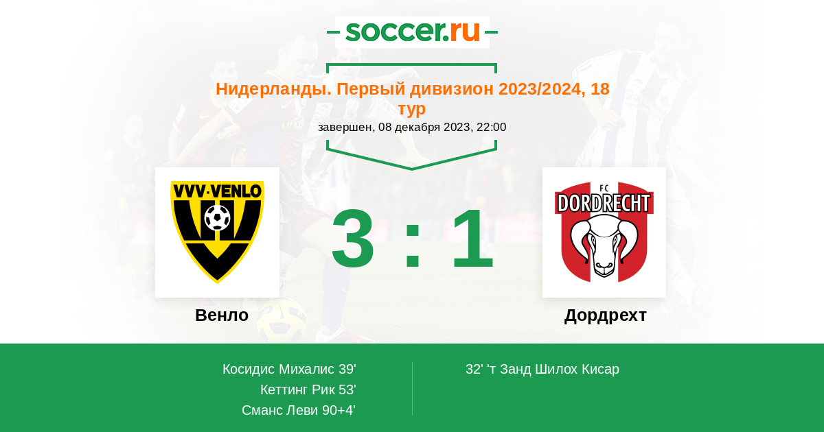 Протокол матча Венло против Дордрехт