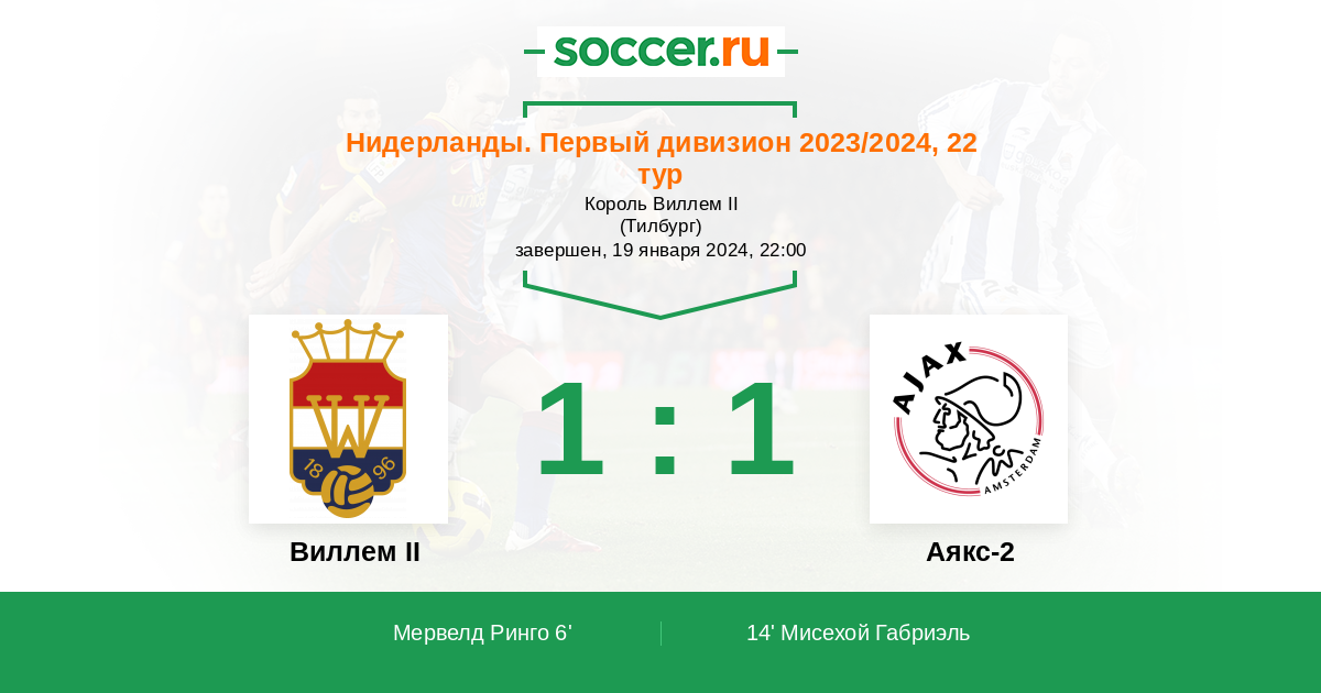 Протокол матча Виллем II против Аякс-2