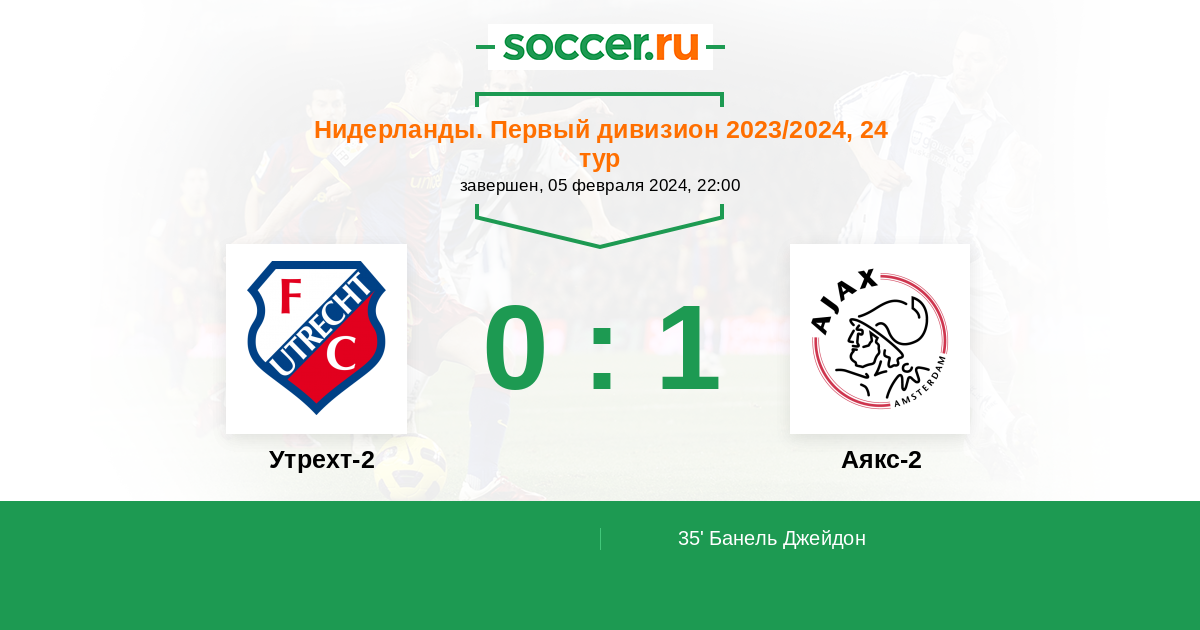 Протокол матча Утрехт-2 против Аякс-2