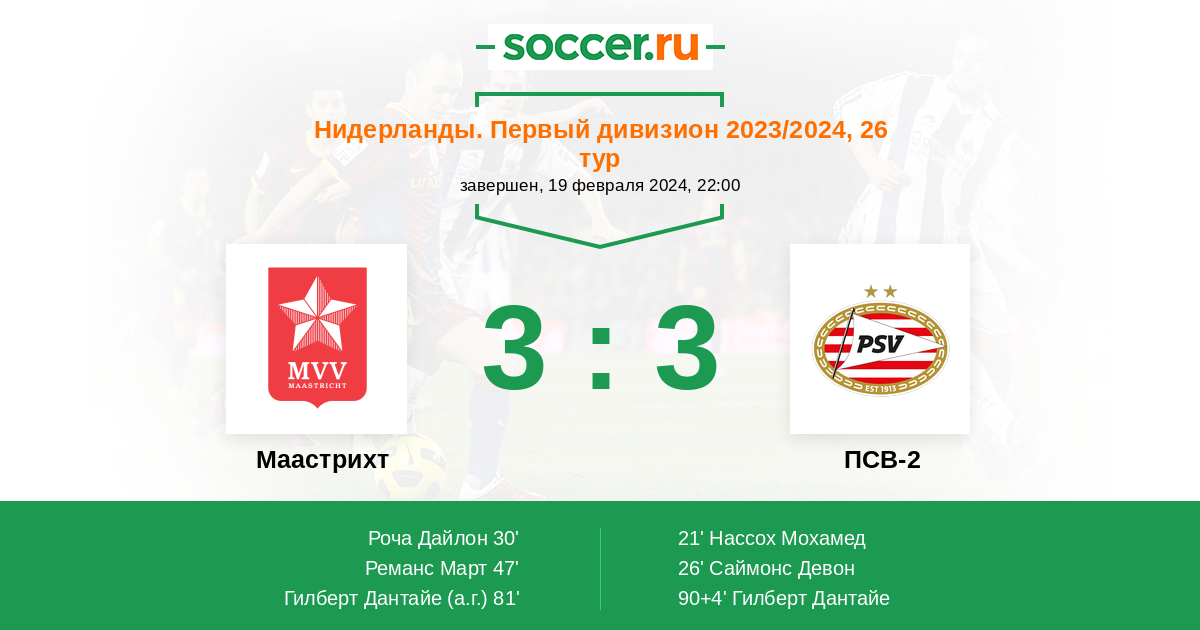 Протокол матча Маастрихт против ПСВ-2
