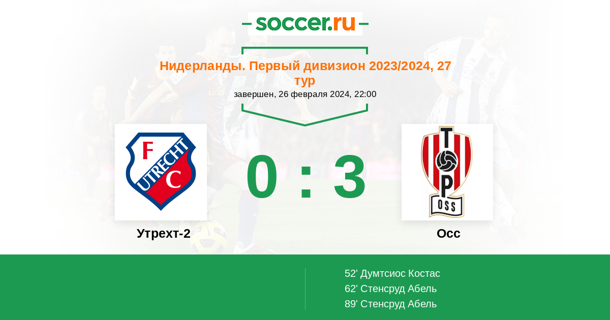 Протокол матча Утрехт-2 против Осс