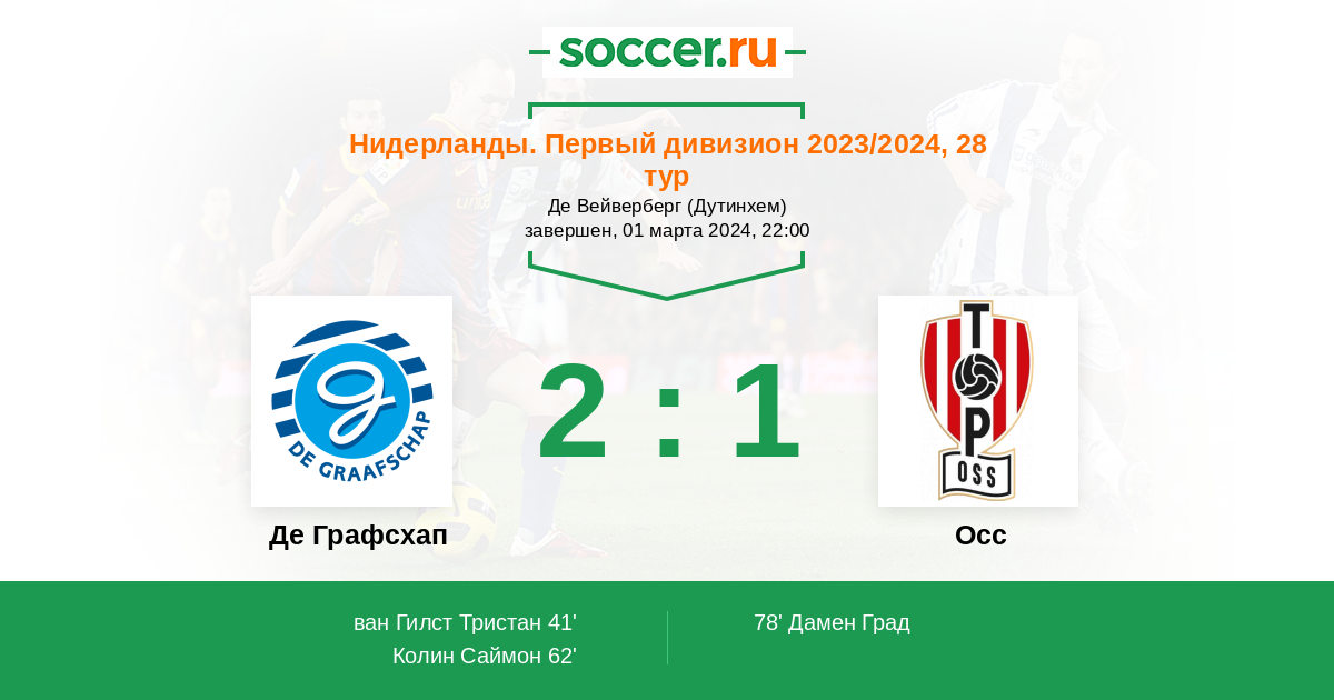 Протокол матча Де Графсхап против Осс