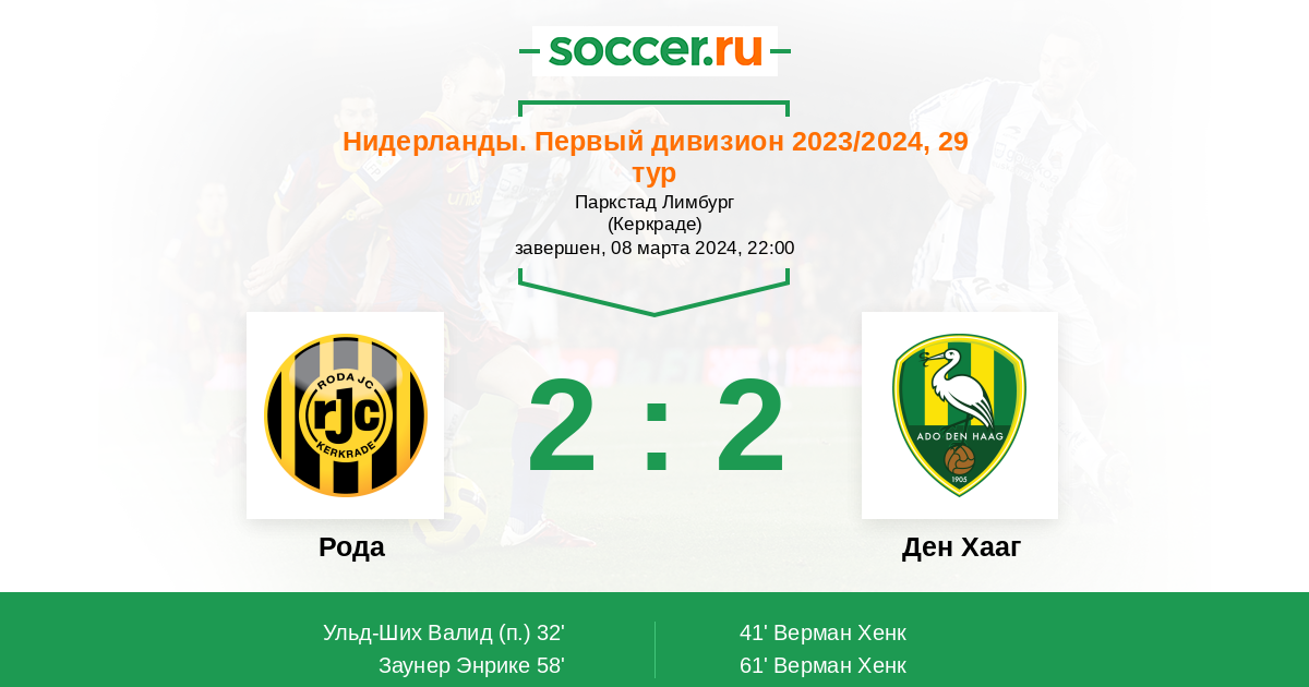 Протокол матча Рода против Ден Хааг