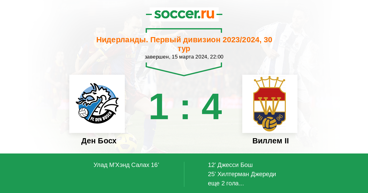 Протокол матча Ден Босх против Виллем II