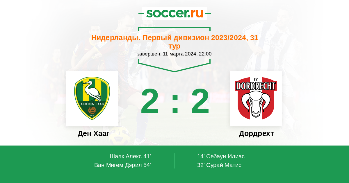 Протокол матча Ден Хааг против Дордрехт