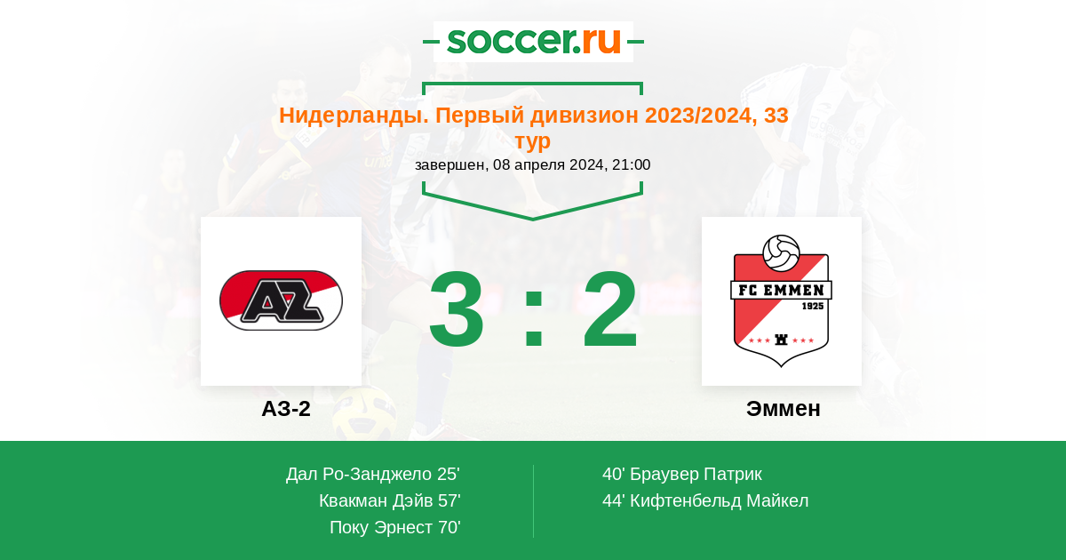 Протокол матча АЗ-2 против Эммен