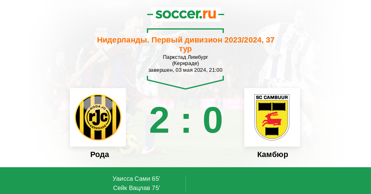 Протокол матча Рода против Камбюр