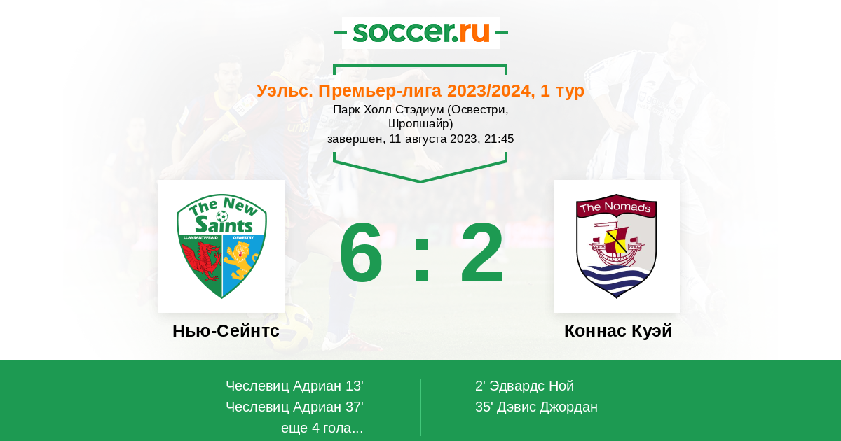 Протокол матча Нью-Сейнтс против Коннас Куэй