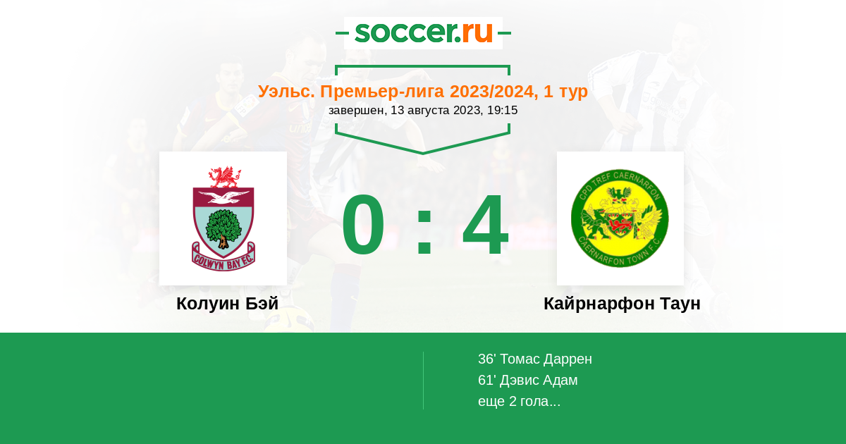 Протокол матча Колуин Бэй против Кайрнарфон Таун